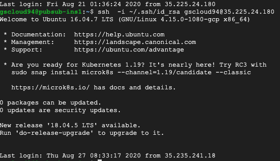 ssh -i [개인키 위치] [등록한 구글 아이디]@[외부IP] 로 접속하면 된다.