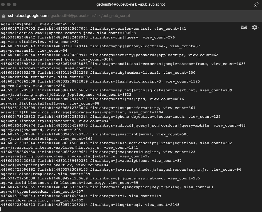 bigQuery에서 pub/sub 으로 불러오고, compute engine 에 올려서 event stream 수행하기