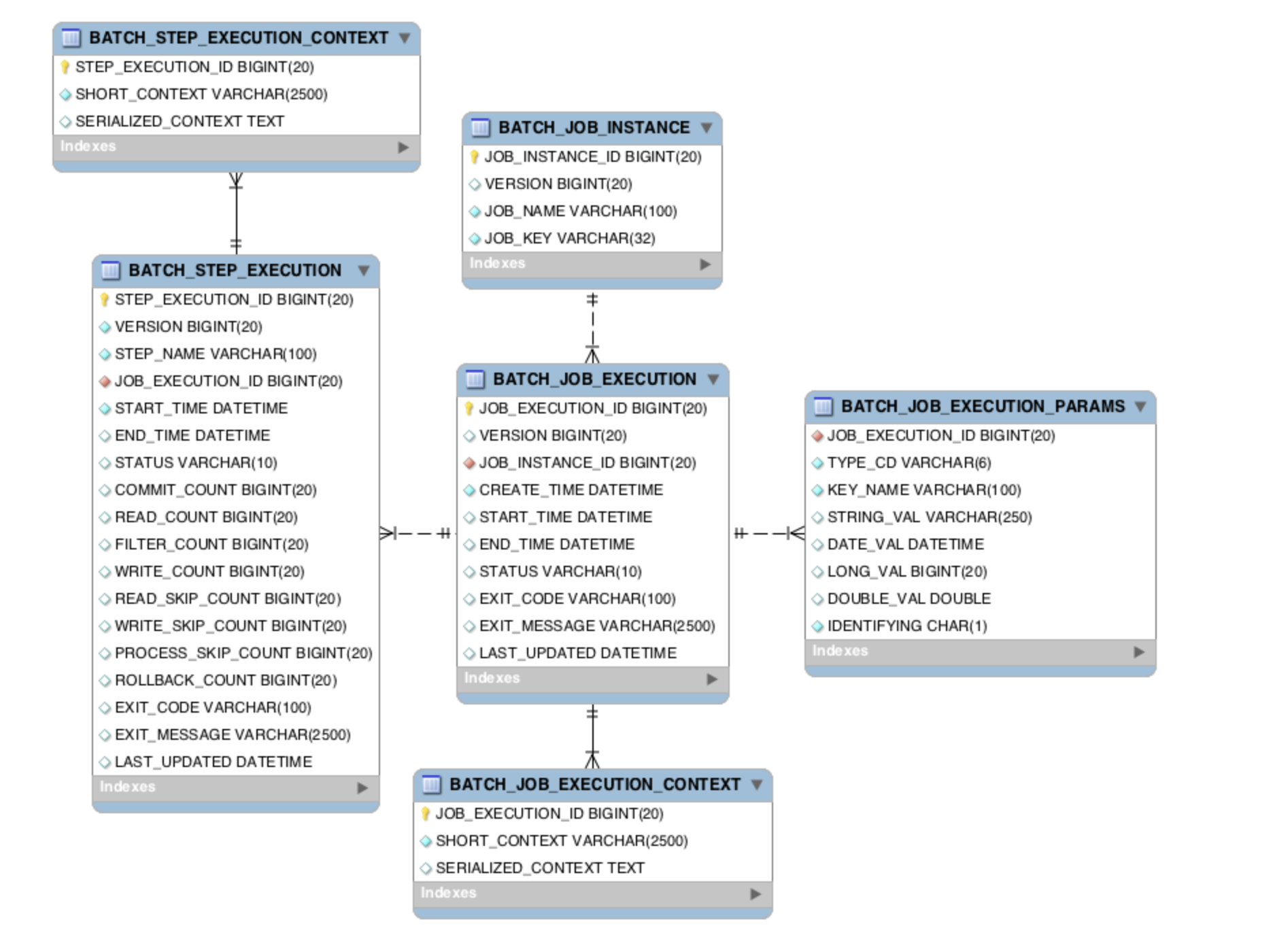 Spring Batch는 Job/Step의 실행을 관리하기 위해 자체적으로 메타 테이블 스키마를 제공합니다.